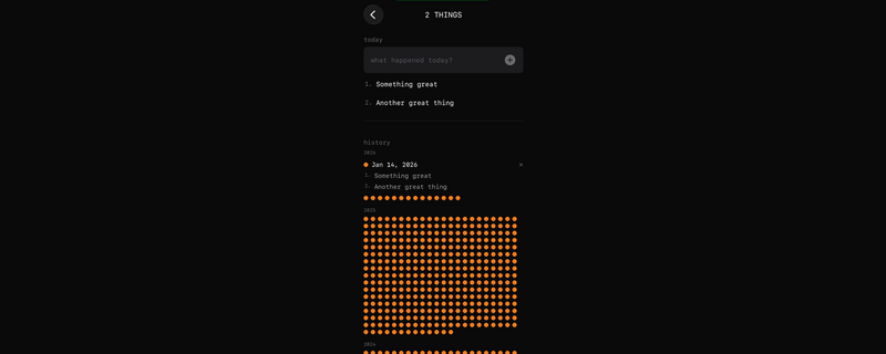 My evening checklist each day links to a “2 things” module, where I enter in my two or more items for that day. (This module is also Face ID protected.)