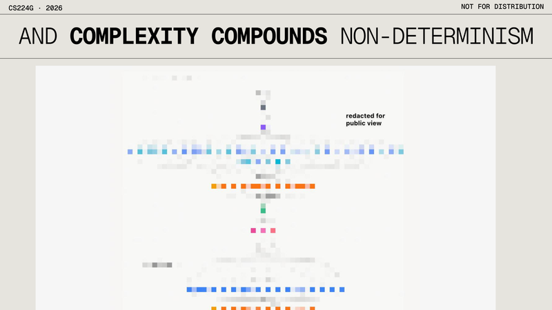 And complexity compounds non-determinism. Especially when you chain LLM calls together or admit arbitrary user input, each non-deterministic step multiplies the variance of the next. By the end of a meaningful AI pipeline, things can shoot far off in the wrong direction.