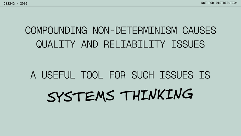 This compounding non-determinism causes quality and reliability issues. You can’t always just “vibe” your way to a good product when the output surface is this wide. Enter: systems thinking.