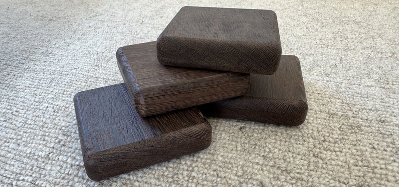Sadly that means the beautiful wenge pucks I started — with plans to make different shapes and string them on a rope — will have to stay out of the playroom.